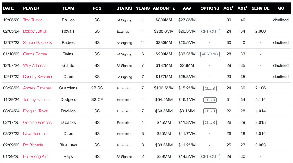 But shortstop’s a position that is exceptionally hard to fill in free agency without paying a lot of money. Just look at the shortstop market in recent offseasons: