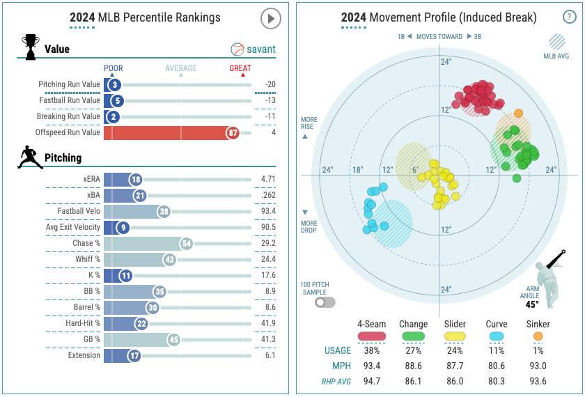 Less fastballs (-8% usage), more curveballs (+2%) and sliders (+3%). Got it.