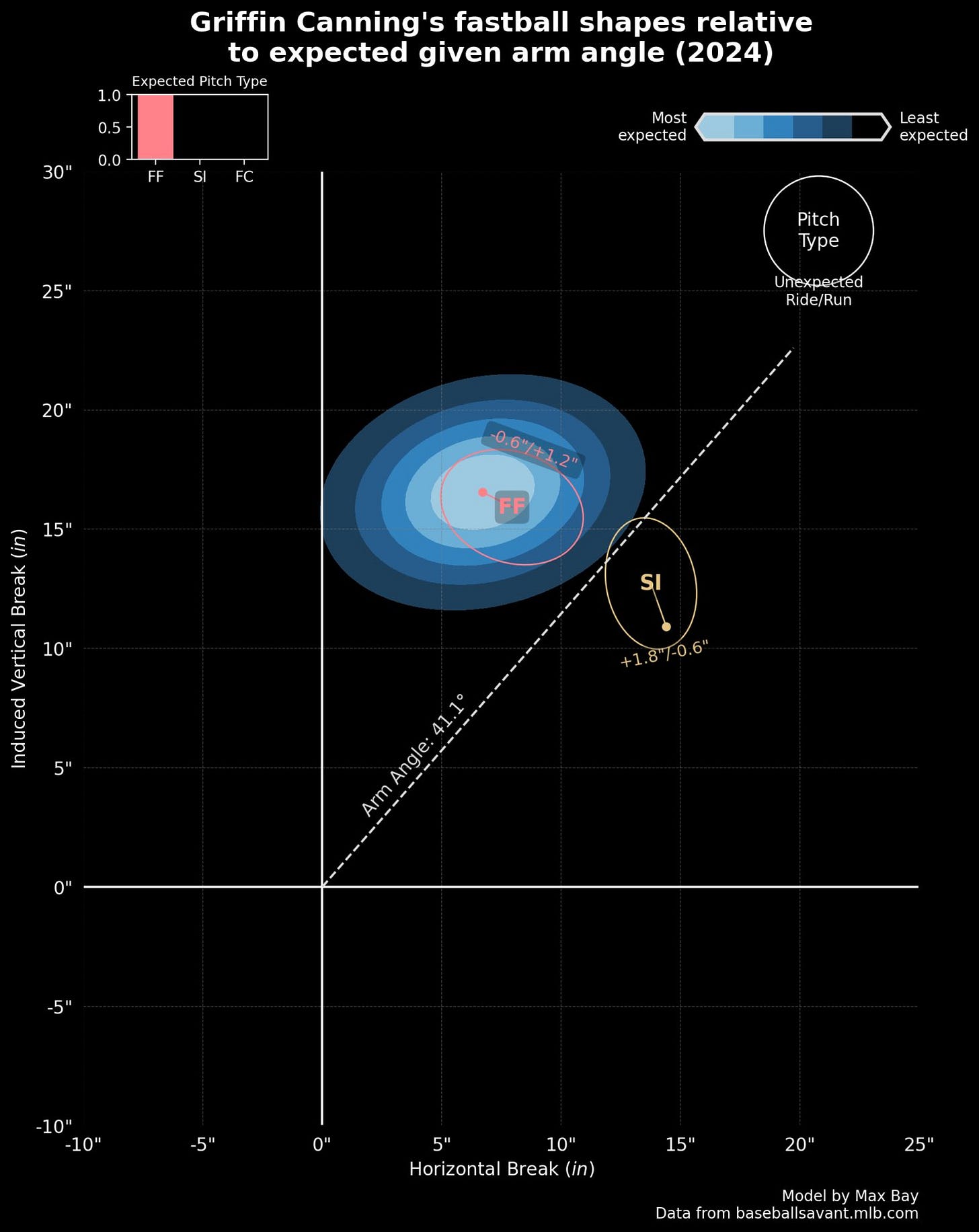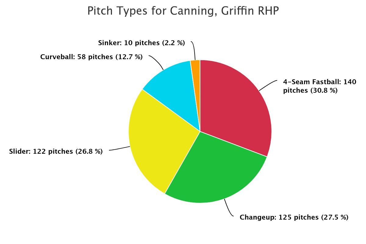 Canning’s four-seam fastball averages just 93.4 mph and gets absolutely LIT up - opposing hitters batted .251 with a .529 slugging off of it this season.3