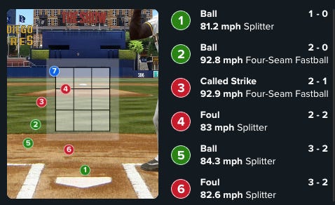 Kudos here also go to Drake Baldwin and Jurickson Profar for successful debuts - despite totaling one hit and one walk combined, they saw 73 pitches in their nine at-bats. A fantastic development, especially considering that so many at-bats last season felt like they ended in the first few pitches.