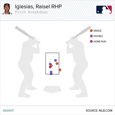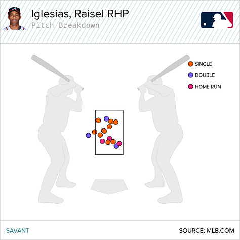 If we’re being honest, these are all somewhat small sample sizes here. Iglesias has faced 215 batters this season and has thrown 796 pitches - a meaningful sample, to be sure, but not the absolute end-all, be-all. That’s the problem with relievers - one egregiously good or bad outing can skew the numbers a bit.