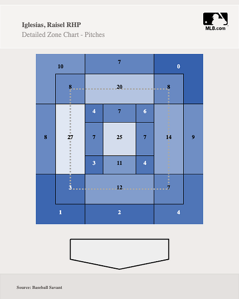 The early fastball usage is still a minor issue - the only hits off of Iggy’s fastball have come on 0-0, 0-1, and 1-1 counts this year - but it’s still better than last season when overuse early led to the fastball having a .364 BAA to open at-bats.