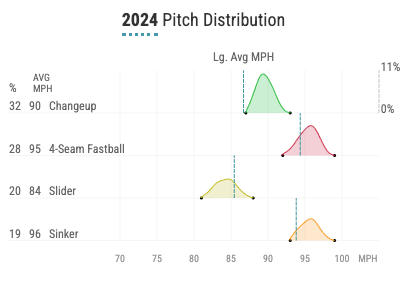 But in 2024? So far, only 16% of his pitches are in-zone fastballs and they’re allowing a .174 BAA and .216 wOBA. He’s already logged 12 strikeouts and 19 whiffs on just 81 swings.
