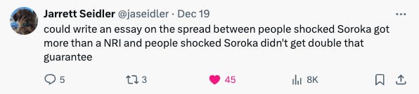$9M’s either a shock to some or a bargain to some, which gives you a great glimpse into how much some folks truly know ball.