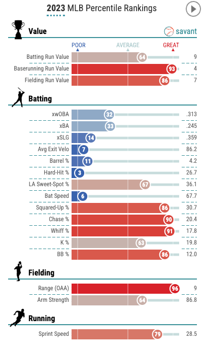 Here’s a statcast card from his 2023 season: