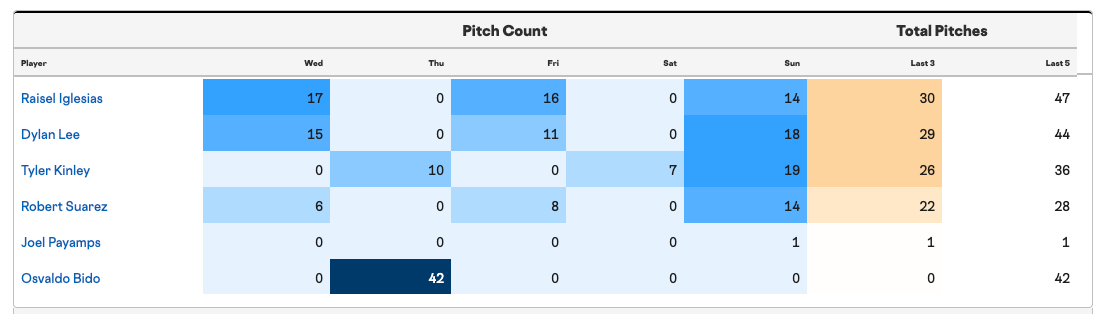 Drew Pomeranz, Jordan Romano, and Chase Silseth all got yesterday off so they’re likely the first ones out of the bullpen gate tonight.