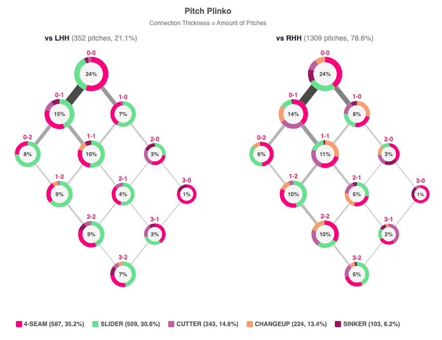 vs LHH: 33% slider, 30% sinker, 22% 4S FB, 15% changeup