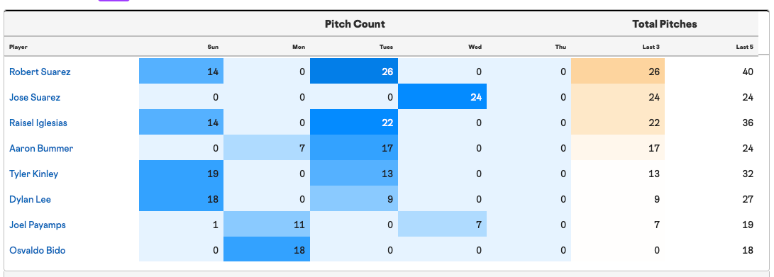 It’s possible that José Suarez is being saved for true bulk work, but other than that, everyone projects to be available.
