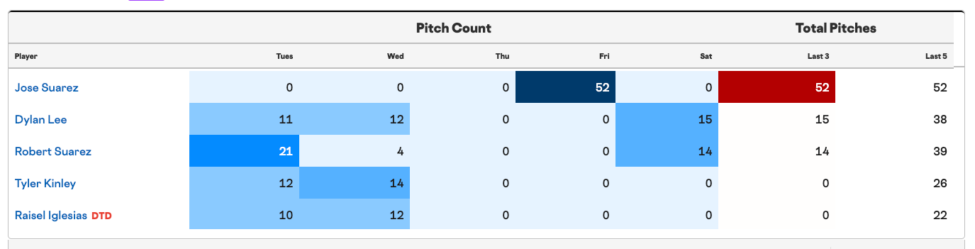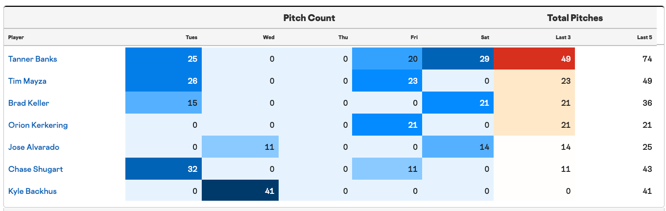Everyone? All of the arms in the pen other than Bachus have pitched in this series so far, so they’re all working off of a recent workload.