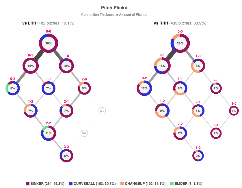 vs RHH: 51% sinker, 36% slider, 8% four-seamer, 5% changeup