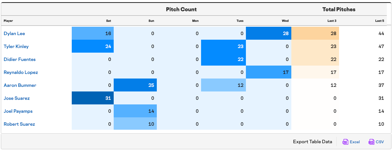 Tyler Kinley and Didier Fuentes should both be good for today, assuming that the starter Fuentes is physically ready to pitch again after a day off. You never know with a young player who’s always been a starter.