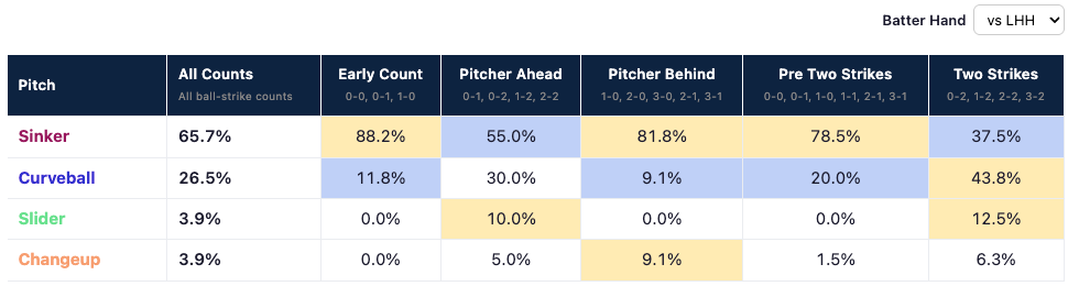 vs LHH: Sinkers early, curveballs and sliders to put hitters away