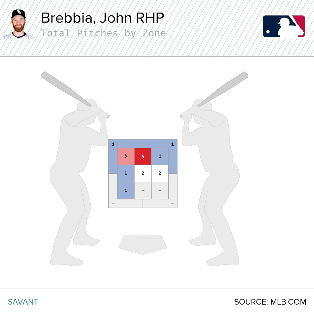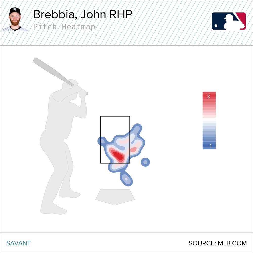 Despite the poor season and overall results Brebbia’s having, his fastball actually has a positive run value of +4, with opposing hitters batting just .186 with a .326 slug off the pitch.