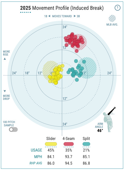 Let’s talk about the split finger - that’s fun. In the small sample size of 2025, that’s been his main putaway pitch.2