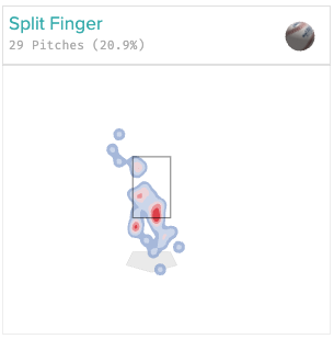 This is an actual metric in Statcast, measuring the rate of two-strike pitches that result in a strikeout. The splitter is sitting on 40% for the year, so 12 of the 29 he’s thrown this year have been for strike three.