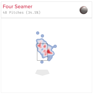 Unless it’s a game plan of elevating to righties and pitching away to lefties (or he’s just wild), it’s a confusing fastball heatmap by Blewett.